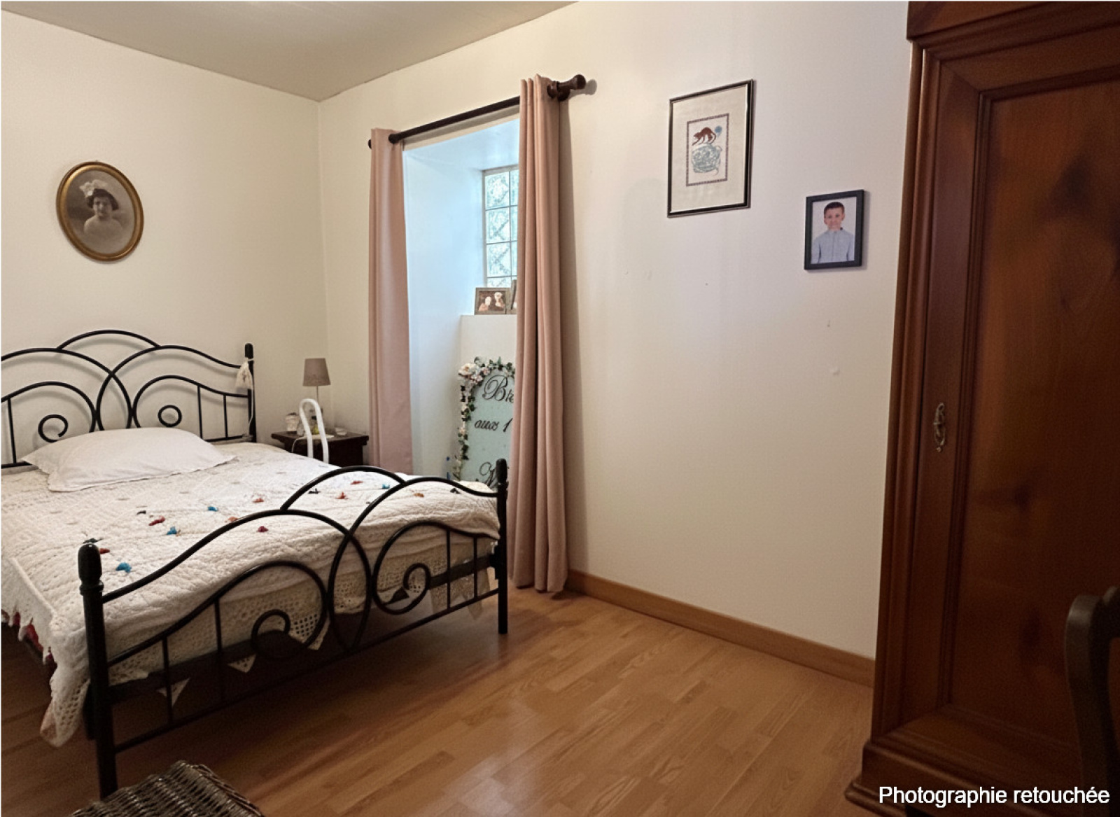 A l'étage : une chambre.