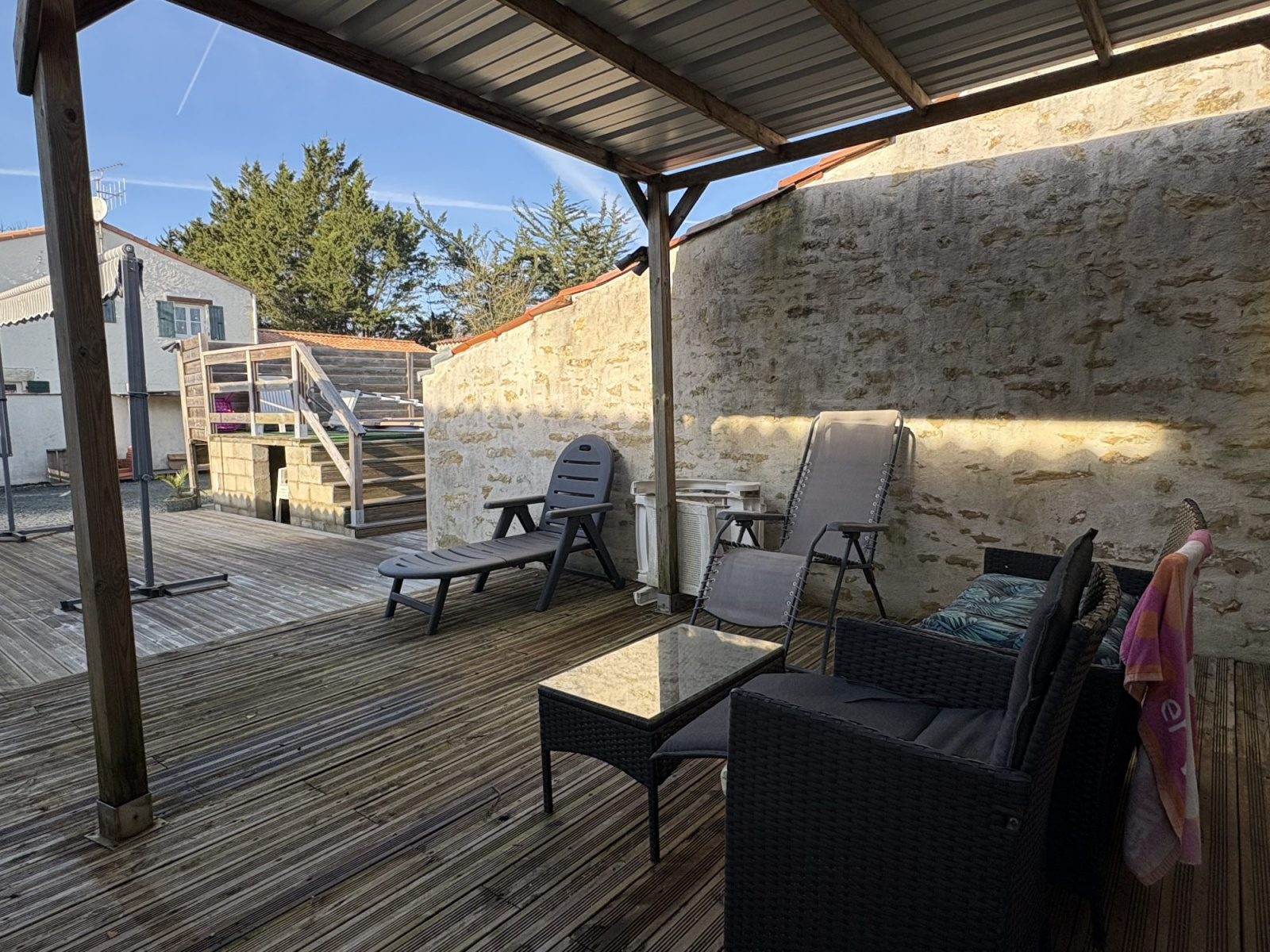 Côté extérieur un terrain entièrement clos, une terrasse en bois, garage + atelier pouvant être transformé en dépendance ou studio.