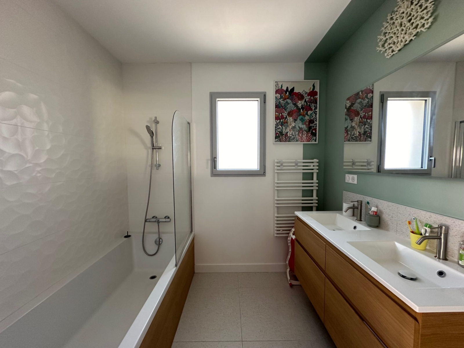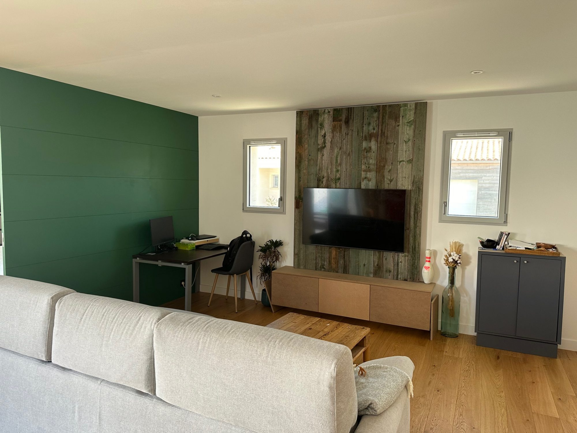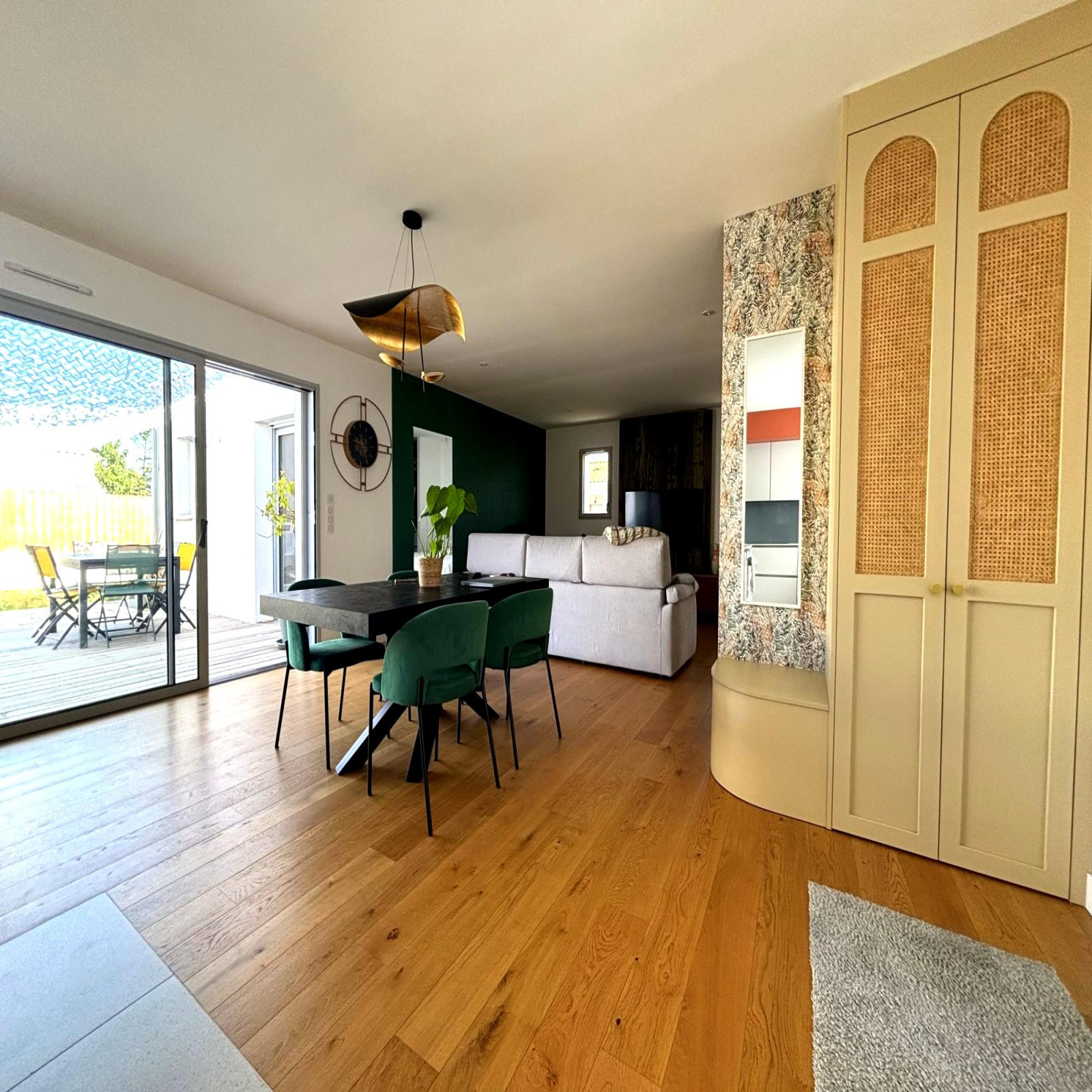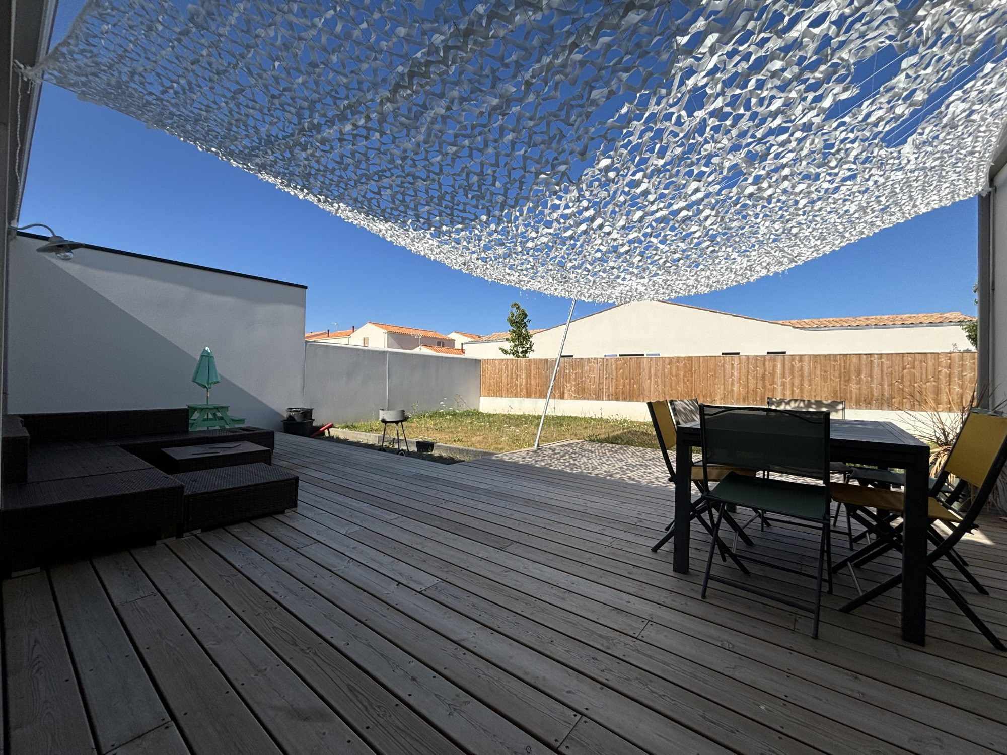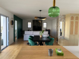 Bienvenue dans votre havre de paix à Esnandes Nichée dans le charmant secteur de la Charente Maritime, découvrez cette magnifique maison plain-pied de construction récente (2021) et d'une surface habitable de 102.30 m². Lumineuse et spacieuse, elle vous offre un cadre de vie idéal pour profiter pleinement de votre famille et de vos amis. Avec ses 4 pièces réparties sur un niveau, cette maison vous invite à la détente et à la convivialité. Le séjour de 55 m², baigné de lumière grâce à ses grandes ouvertures en aluminium à double vitrage, est le c?ur de la maison. Il s'ouvre sur une cuisine américaine aménagée et équipée, idéale pour les amateurs de cuisine. Les 2 chambres ainsi que la suite parentale, vous permettront de vous ressourcer en toute tranquillité. Une salle de bains avec douche et baignoire et un WC indépendant, assurent un confort optimal au quotidien. Côté extérieur, laissez-vous séduire par la terrasse de 50 m², parfaite pour les moments de détente en plein air, et le jardin de 150 m², propice aux jeux et aux activités en famille. Un stationnement intérieur et deux extérieurs sont également à votre disposition. Cette maison, isolée avec de la laine de verre et équipée d'un chauffage individuel, répond aux normes PMR et est dotée d'un assainissement conforme. Elle bénéficie d'une vue agréable sur le jardin et la terrasse, et est exposée Est-Ouest. Située à proximité des commodités, vous trouverez une maternelle et un bus à 10 minutes à pied, une école élémentaire à 15 minutes à pied. Plusieurs commerces d'alimentation générale, un restaurant et un parc sont accessibles en 10 minutes en voiture. Un médecin généraliste est également à 15 minutes à pied. N'attendez plus pour venir découvrir cette maison qui n'attend plus que vous pour écrire la suite de son histoire.